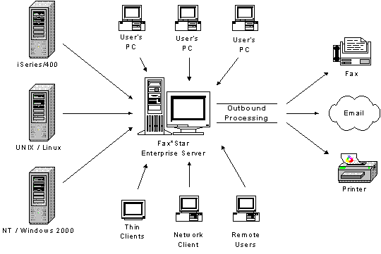 Fax★Star has additional capabilities for PC Networks and Terminal Server environments. By utilizing the Fax★Star Mail Gateway (Lotus Notes, Microsoft Exchange, SMTP) or by using Fax★Star Windows software any PC on the Network, users can send outbound faxes. Depending on your network, one or more of these tools may apply. With Fax★Star it has never been easier to fax PC documents.