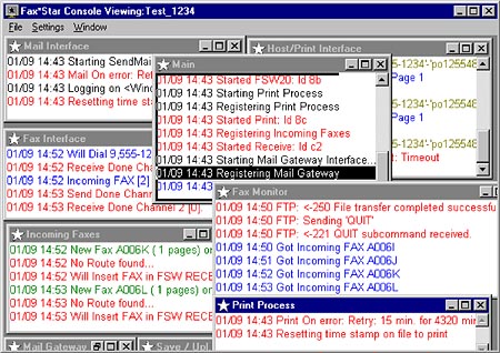 From the control panel, the administrator can monitor the main Fax★Star Advanced Server components. This feature can be started from any PC on the network. The different windows display: