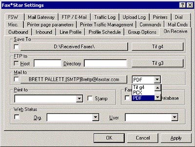 Inbound routing can be performed by capturing the CSID number, DTMF sequence, DID number, or by fax line. Once Fax★Star has a routing parameter to work with additional information can be gathered from a table on any platform, including Active Directory. The incoming fax setup allows defining at the user level:
